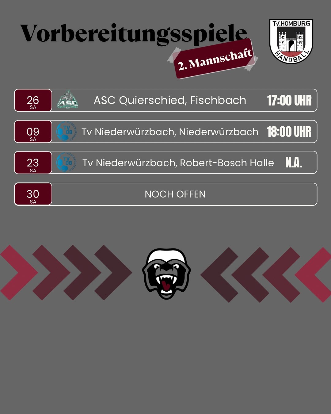 - +++ 15.11.2025: Zum Auftakt in dieses Spieltagwochenende verliert unsere Zweite zu Hause gegen die HG Saarlouis II mit 26:30 (13:15) +++ Beim Tabellendritten TV Gelnhausen verliert unsere Erste mit 30:23 (13:14) +++